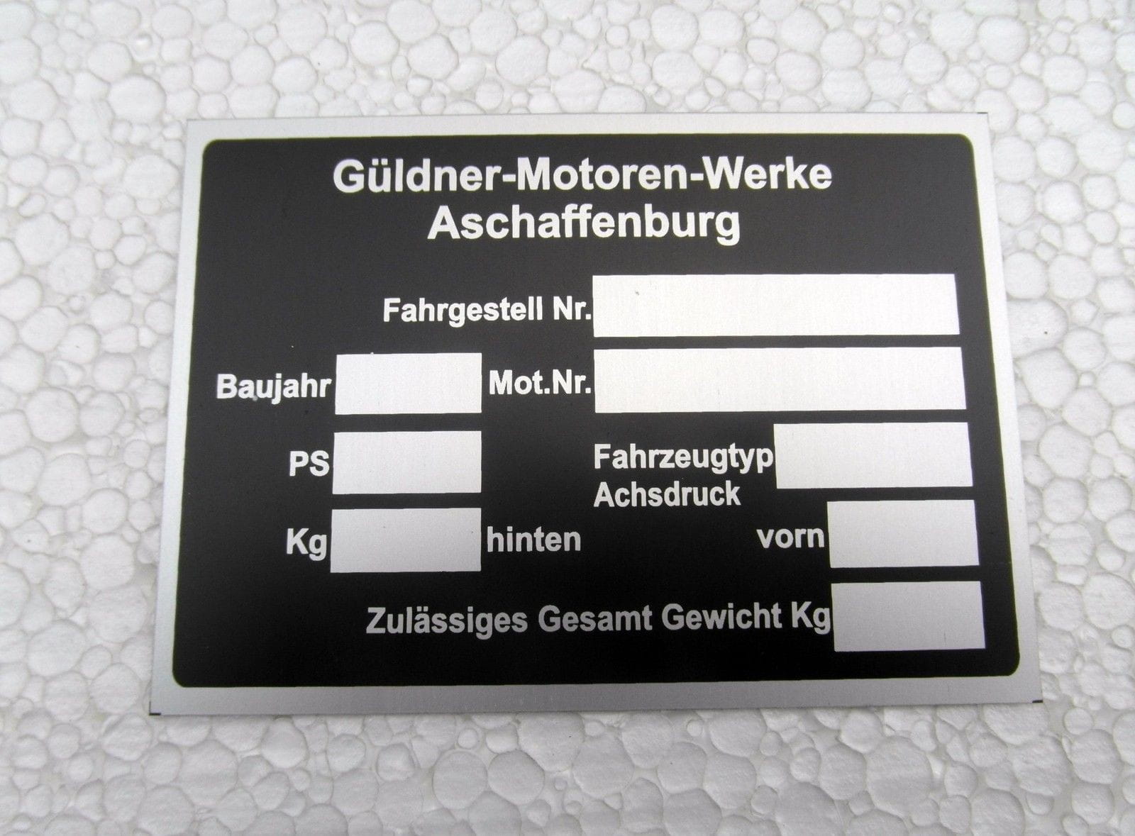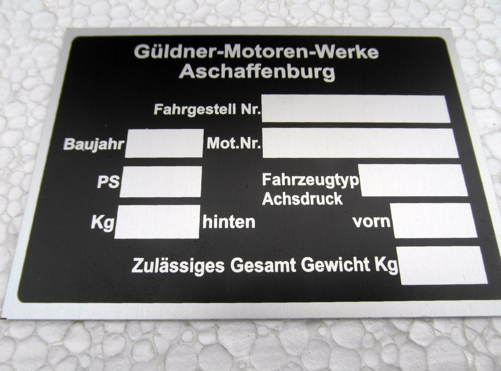nr. 119 - Typenschild Güldner Motoren Werke Aschaffenburg Alu eloxiert ca.105 x 75 mm