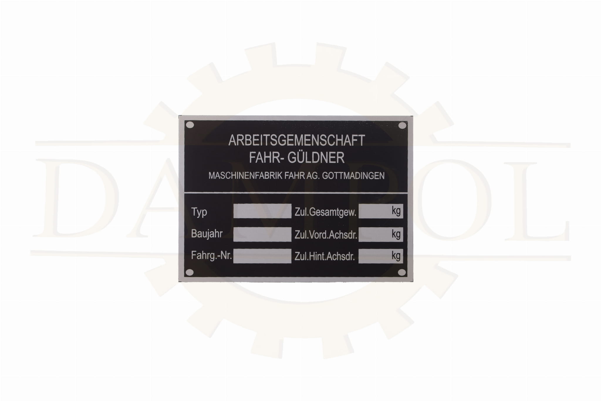 N° 111 Plaque signalétique FAHR-GÜLDNER, aluminium anodisé, env. 105 x 75 mm
