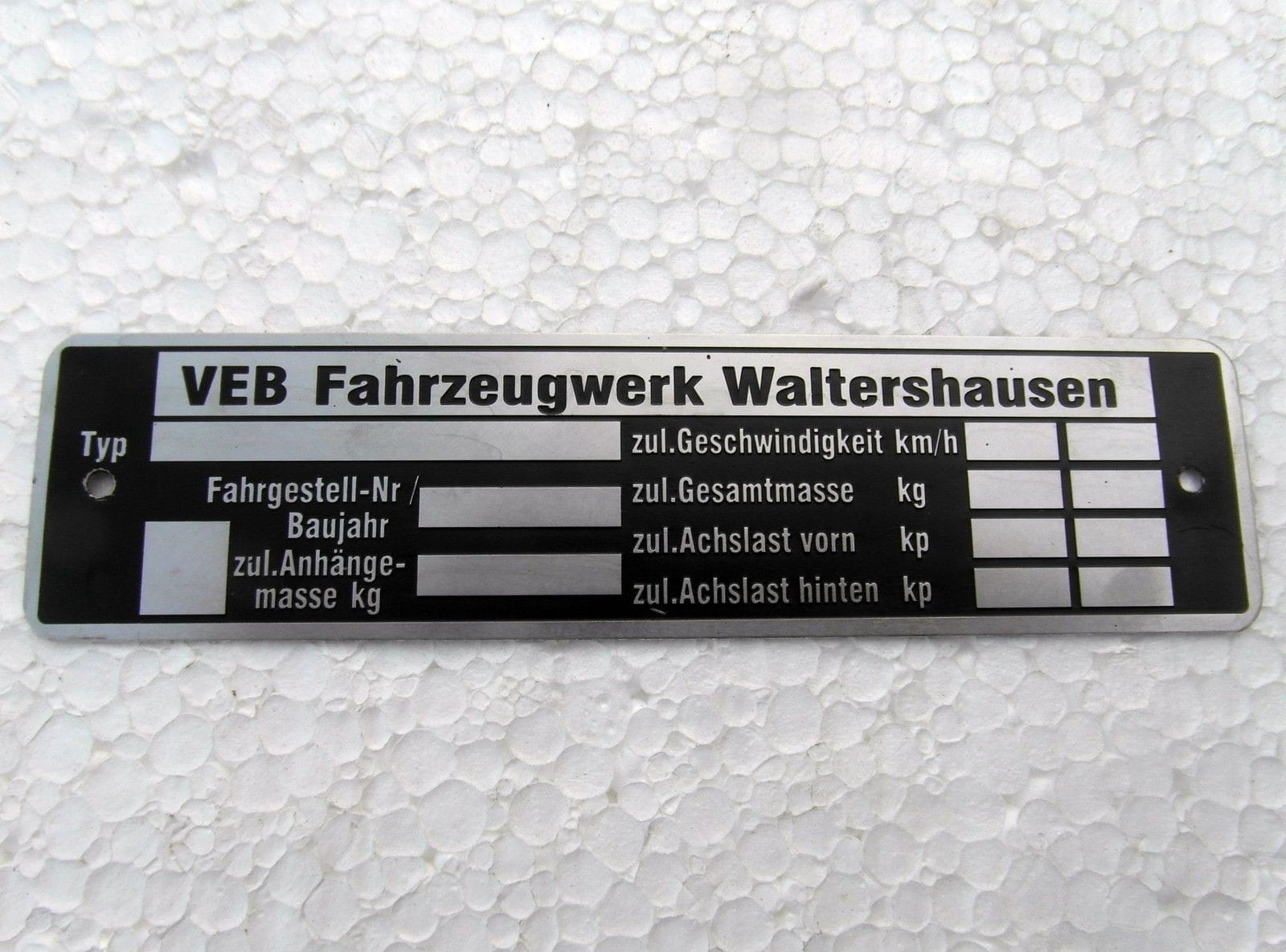N° 85 - Plaque d'identification Multicar VEB Fahrzeugwerk Waltershausen, aluminium gravé en profondeur