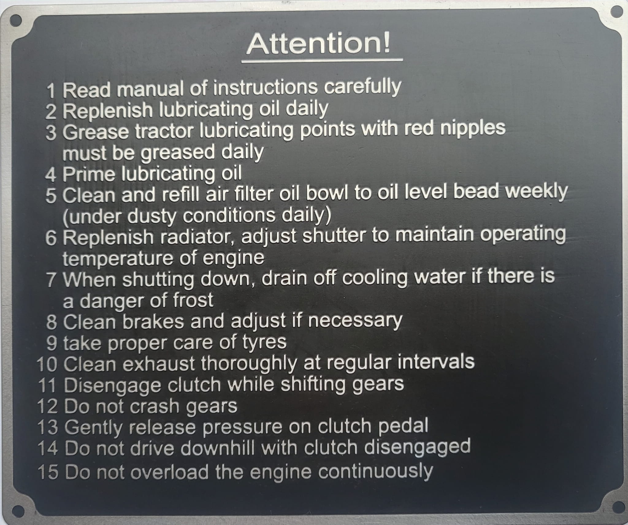N° 143 - Panneau « Attention » pour Lanz Bulldog, Ursus, Pampa, en aluminium gravé