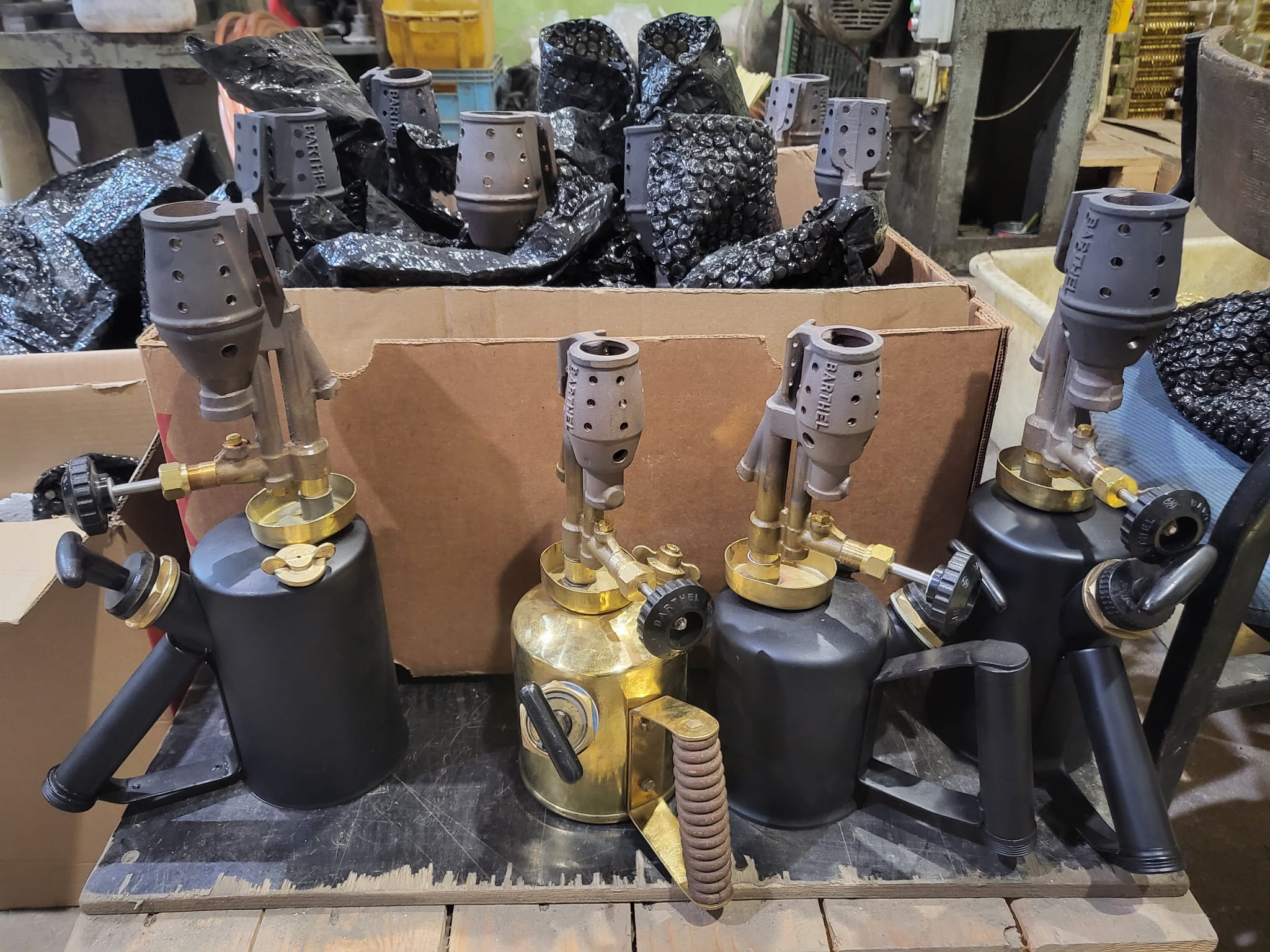 et un brûleur « Barthel » neuf, compatible avec les moteurs à bulbe chaud des tracteurs Lanz Bulldog,