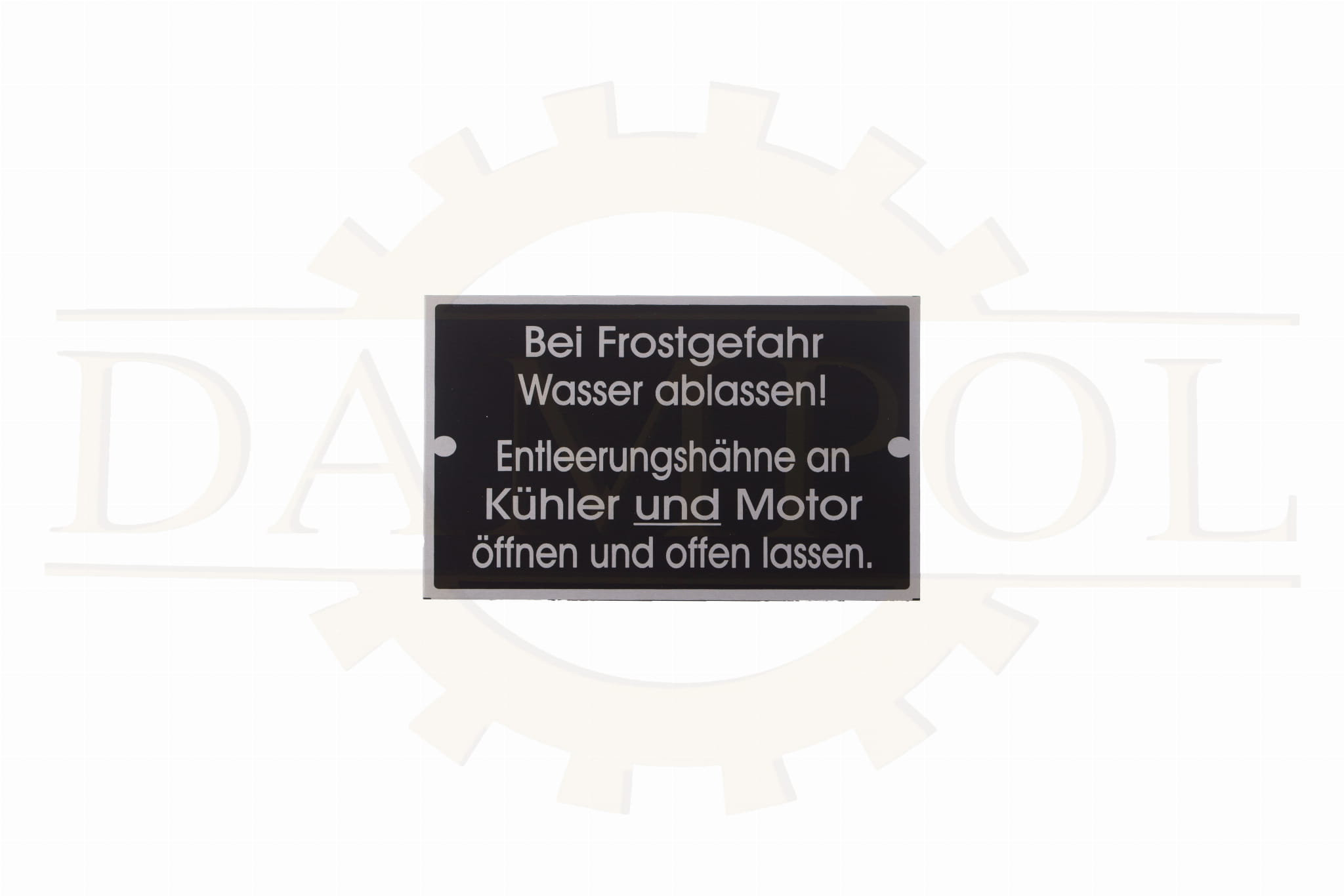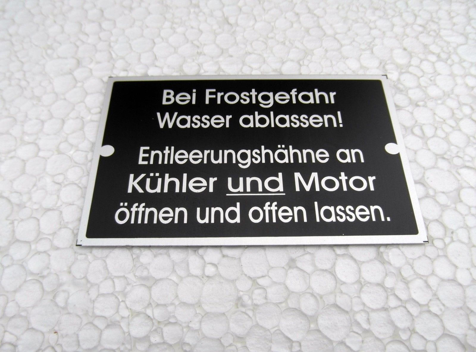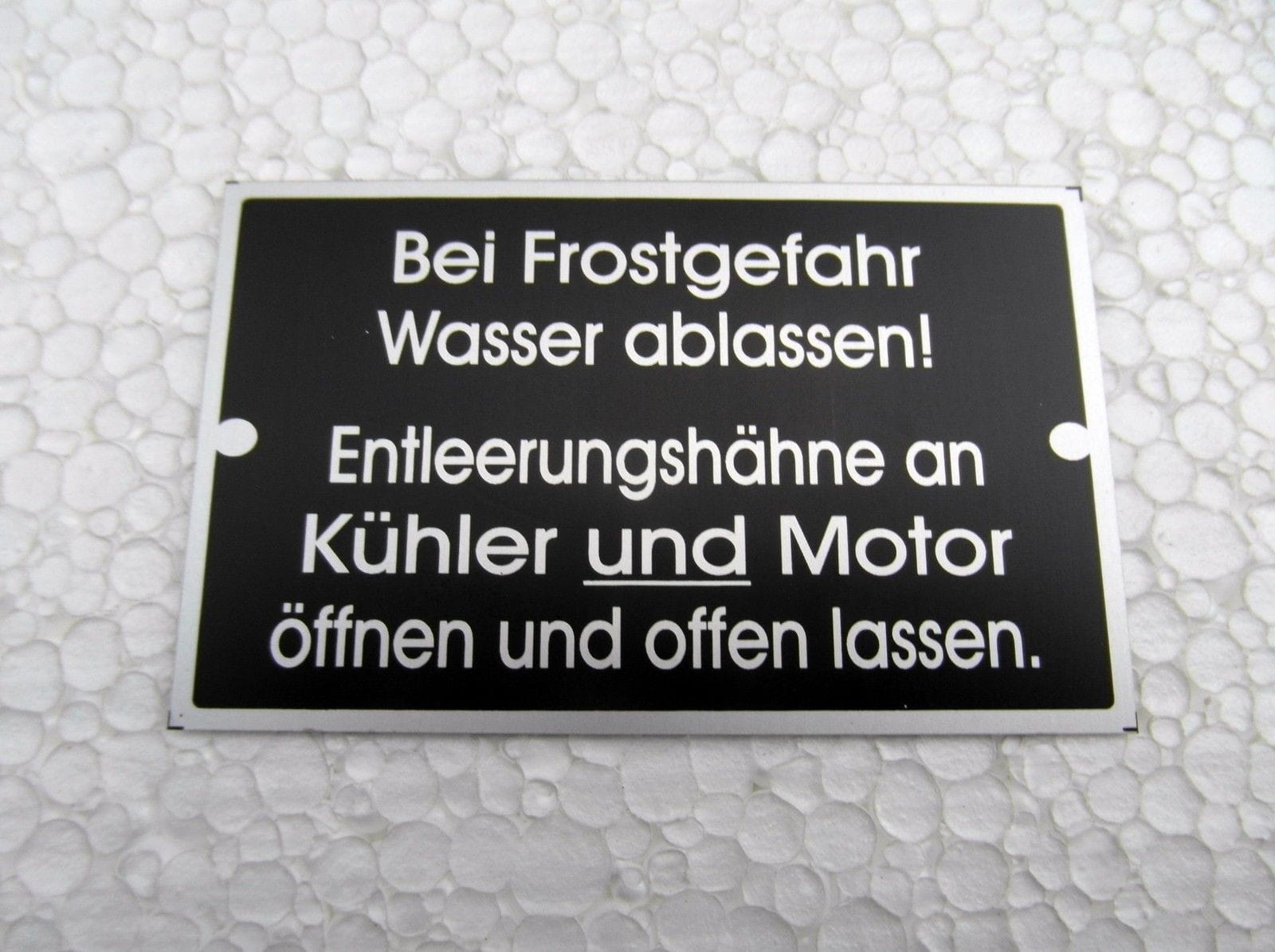 N° 110 - Panneau d'avertissement de gel pour Fendt, Schlüter et MAN - Aluminium anodisé, env. 85 x 52 mm