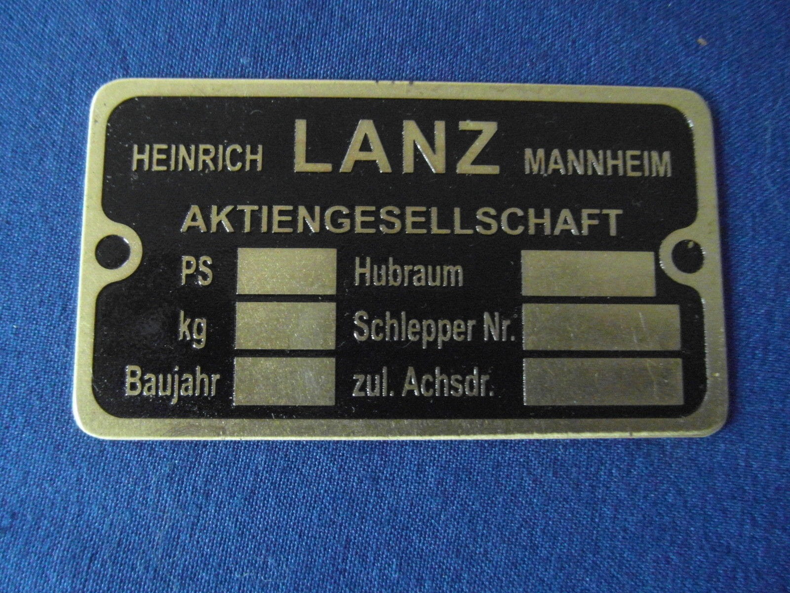 Nous vendons une plaque d'identification neuve en laiton gravé pour tracteur Lanz Bulldog.