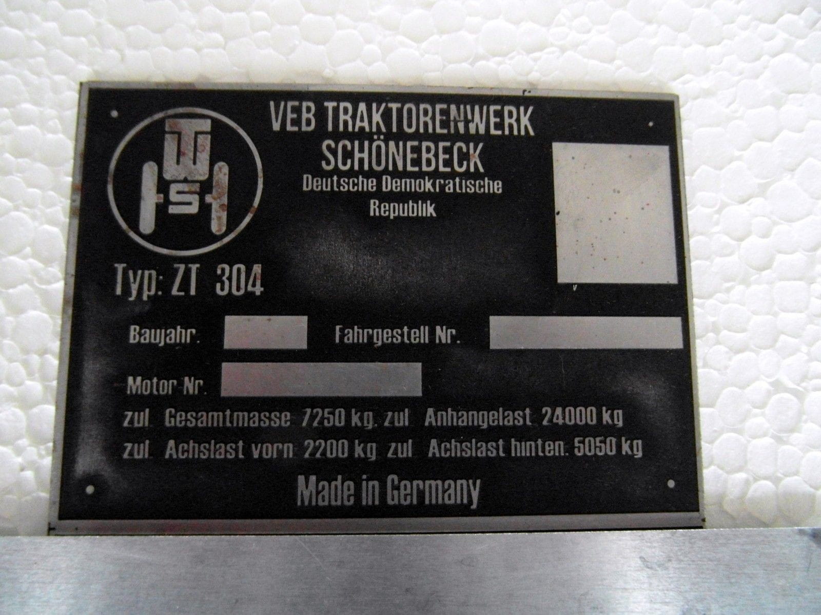 Nous vendons une plaque d'identification neuve Fortschritt ZT 304,