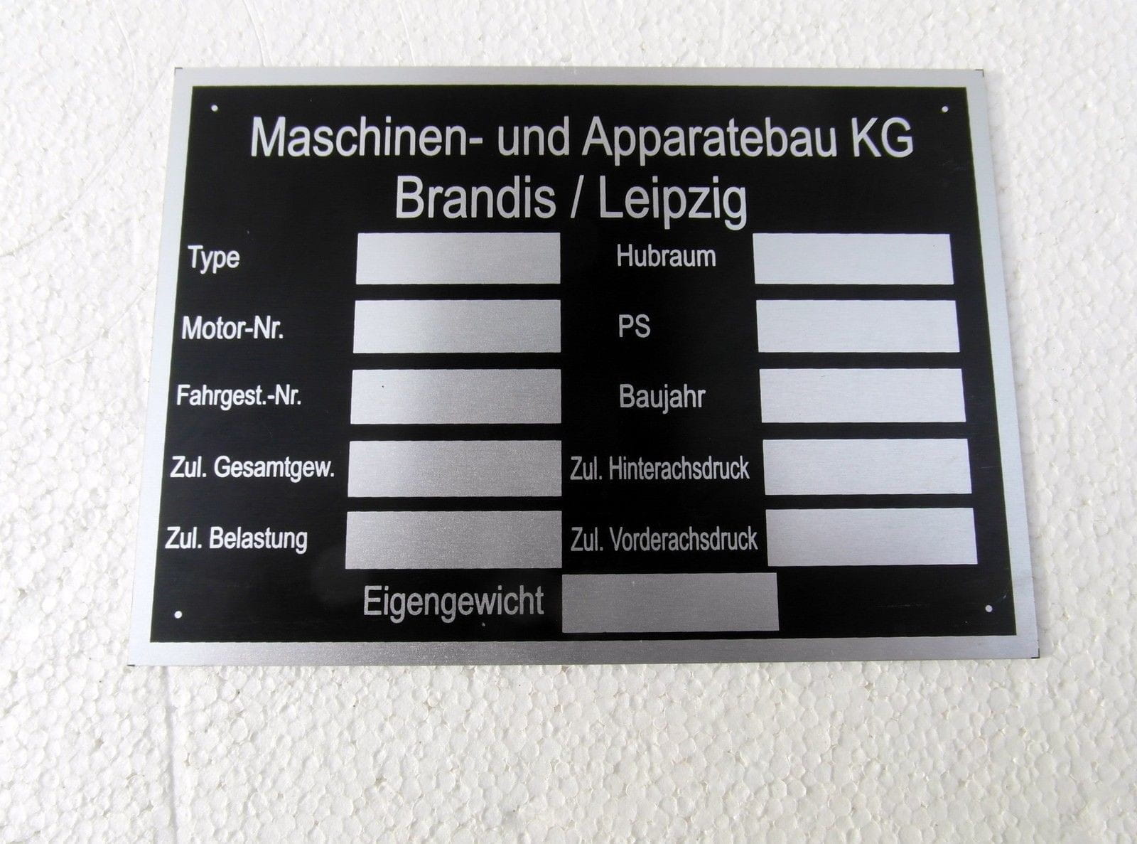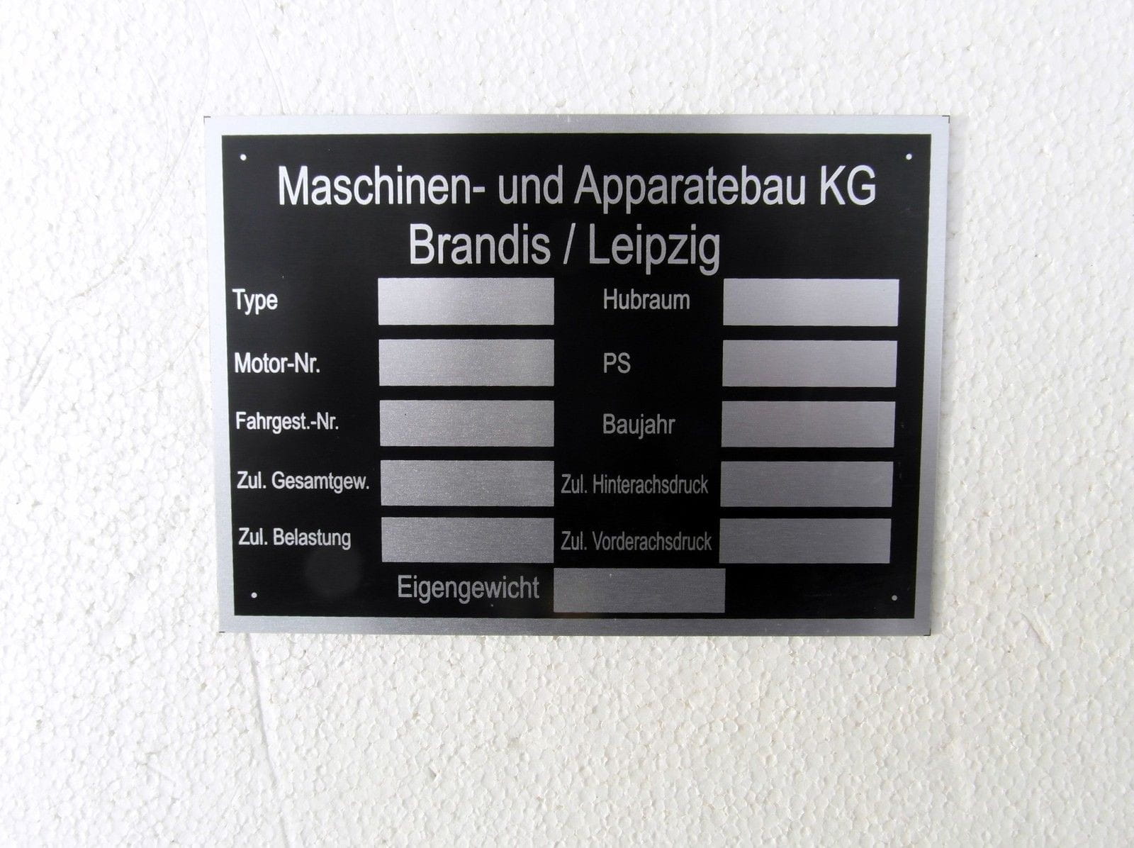 N° 91 Plaque signalétique Maschinenbau KG Brandis / Leipzig RDA Aluminium anodisé