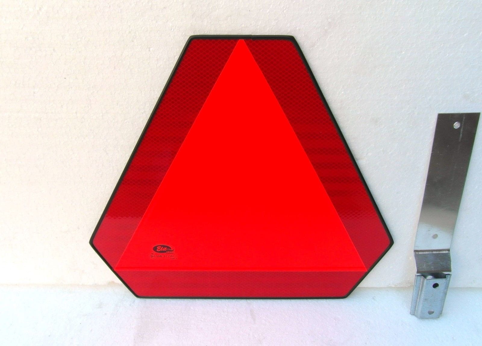 Nous vendons un panneau de signalisation arrière triangulaire métallique neuf, compatible avec les tracteurs, engins de chantier, véhicules pour personnes à mobilité réduite et fauteuils roulants.
