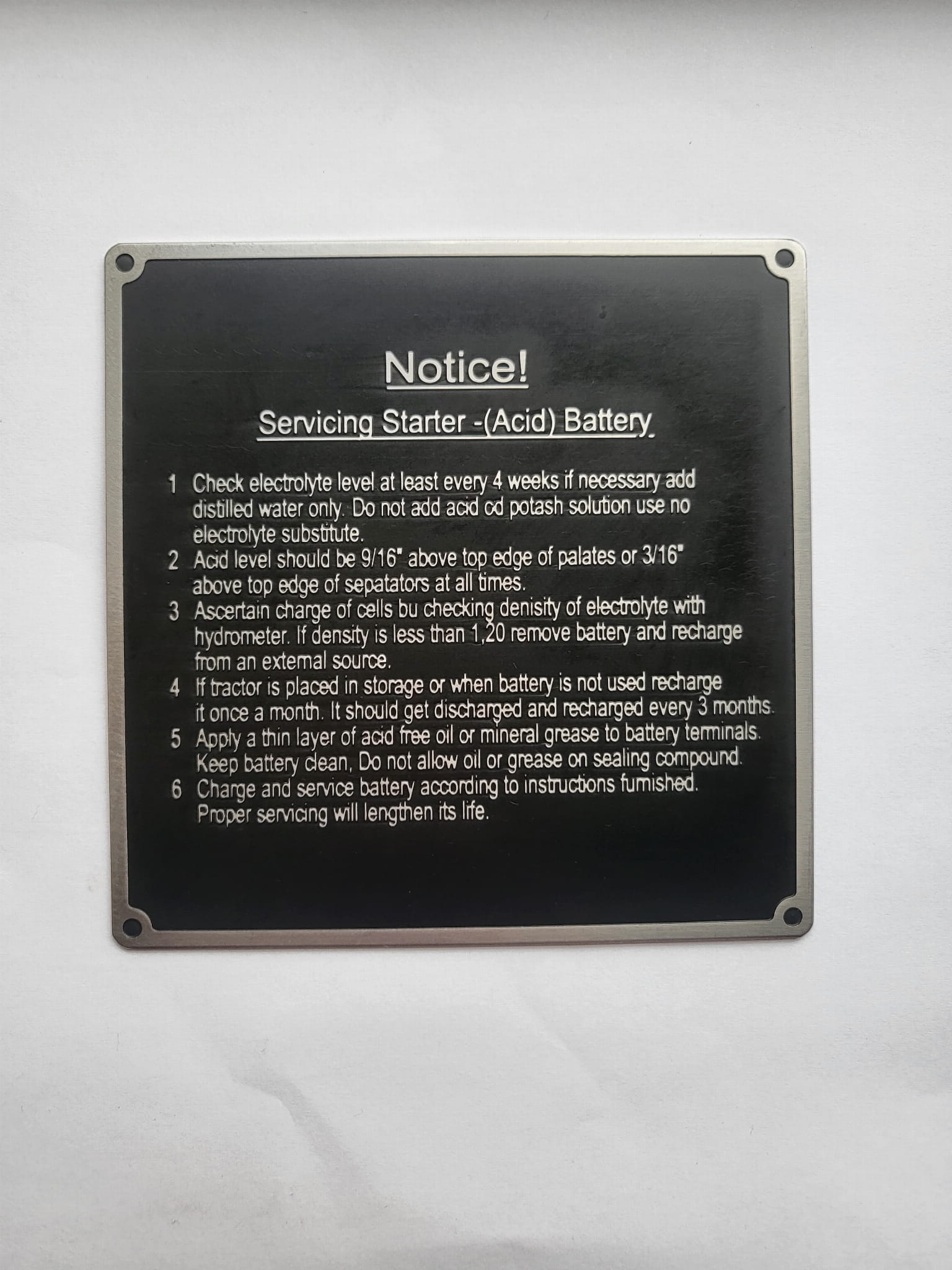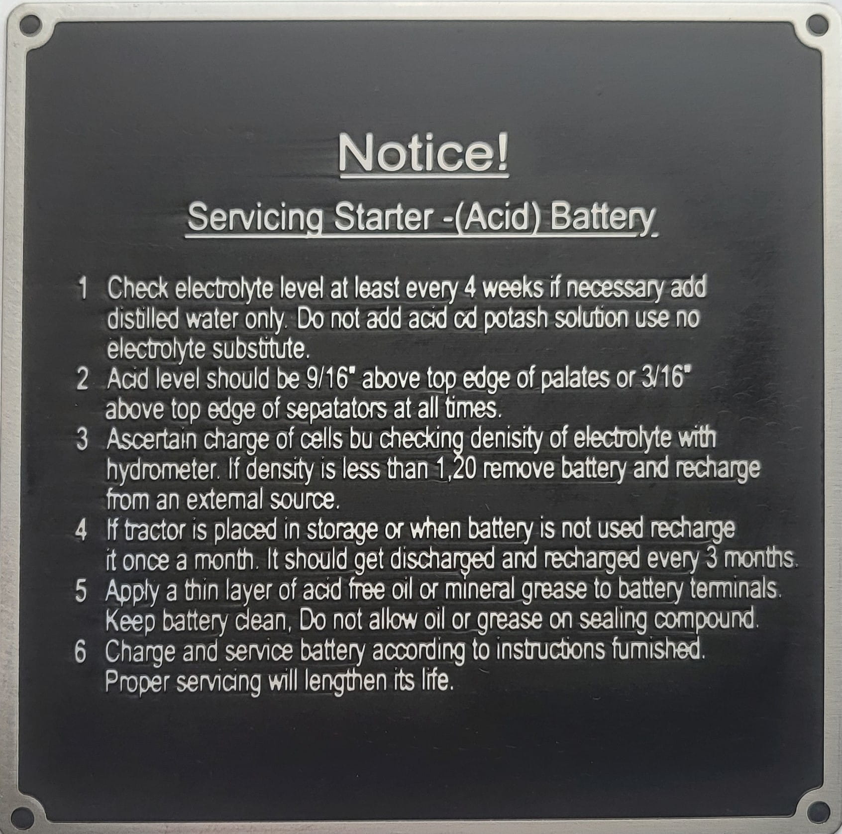 n° 147 - Panneau « Notice » pour Lanz Bulldog, Ursus, Pampa, en aluminium gravé