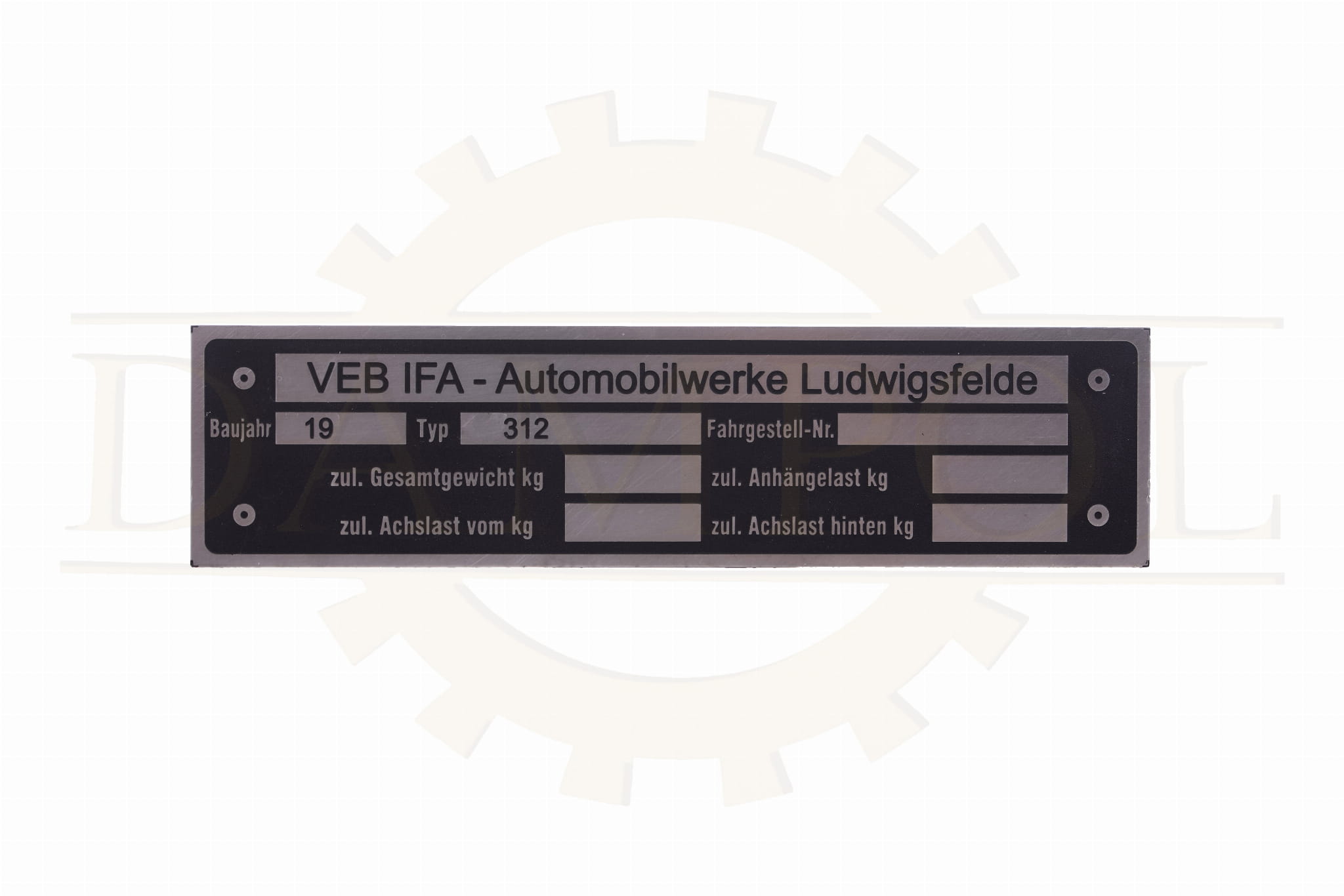 Typenschild "VEB IFA- Automobilwerke Ludwigsfelde Typ 312"